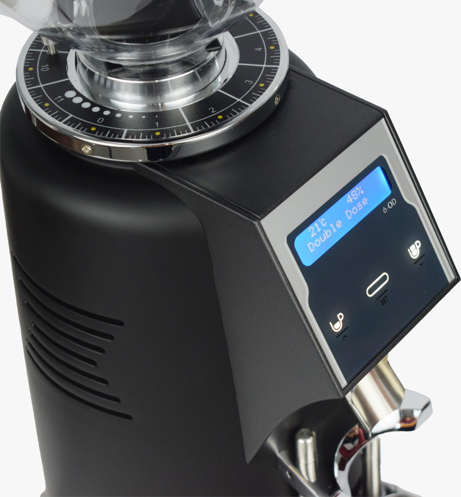 Delivers fresh coffee directly into the portafilter with zero retention for maximum flavor and minimal waste.
