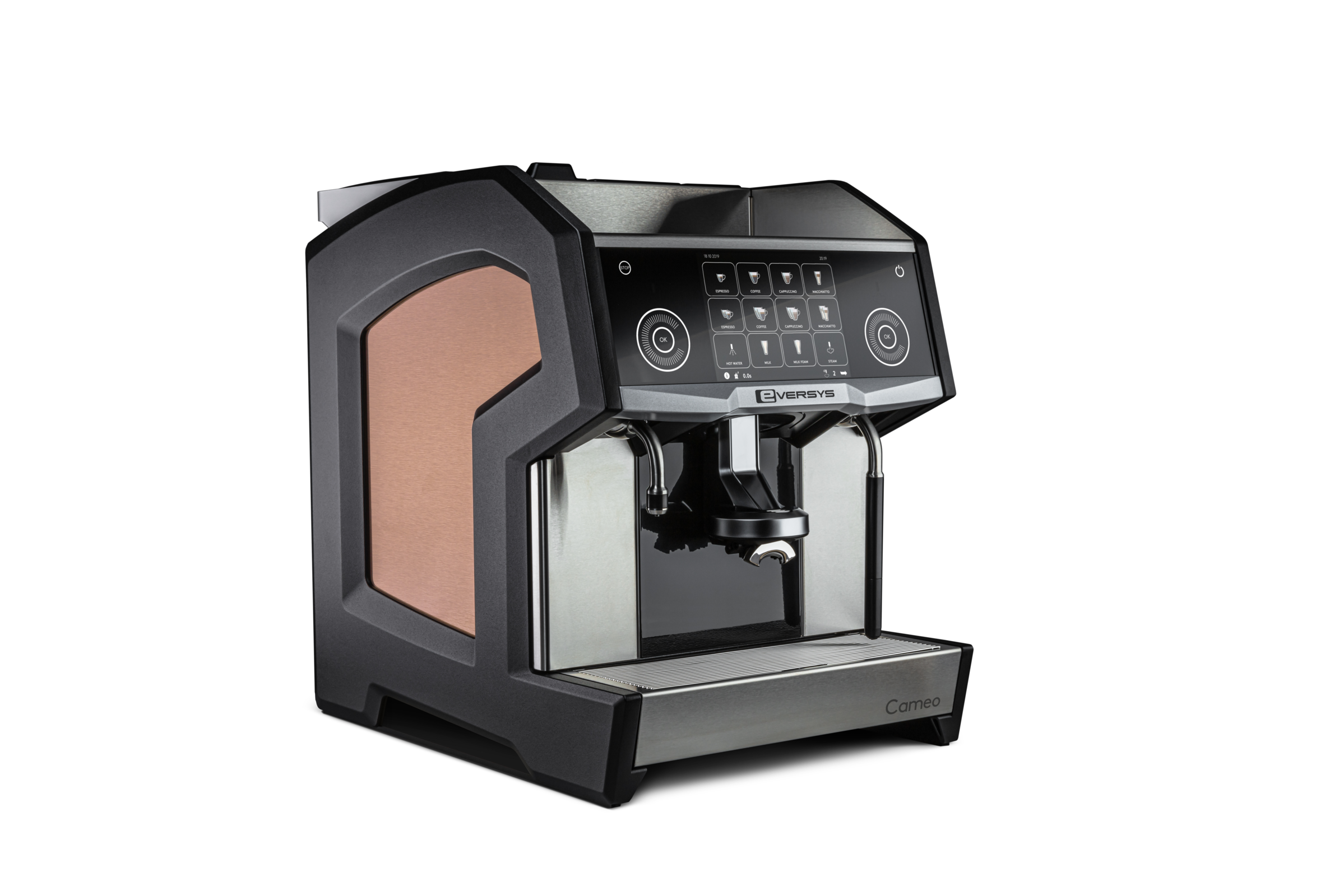 Eversys vision is to become the leading global manufacturer of professional, super traditional espresso equipment. Creating a blend between authentic flavours, smells, and innovative technology, the Cameo C’2M manages to close that gap between traditional and super-automatic technology, featuring a new touch-screen interface design for ease-of-use and, temperature control, and an optional cold milk foam. This new design also allows operators to match their machines with their brand’s identity, thanks to a variety of custom colors.